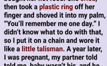 Her eyes filled with tears the moment she saw the plastic ring hanging from my chain. For a second, neither of us spoke—just stared, caught between disbelief and recognition. “You …