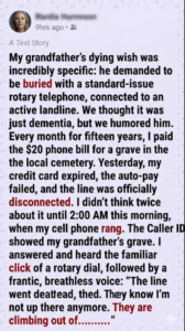To my nephew, David: You are practical to a fault. You count pennies, you play it safe, and you measure a man’s worth by his 401k. You paid for my funeral because it was the ‘proper’ thing to do, and for that, I am genuinely grateful. Because you are sensible, I know you will thoroughly clean my apartment. When you pull up the faded linoleum under the kitchen sink, you will find exactly $9,000 in cash. It covers the cost of my burial, plus a sensible five percent interest. Enjoy the toaster.