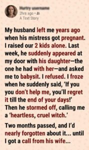 “I’m not asking you to babysit,” she added quickly, almost panicked. “I just… I thought maybe you could tell me how you did it. How you managed. Raising kids alone. Surviving after he left.”