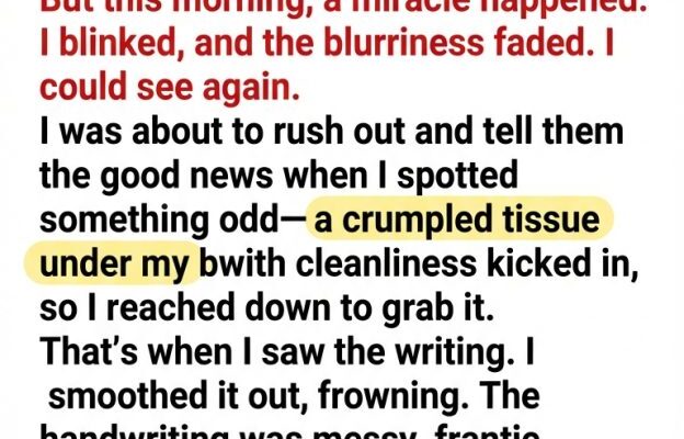 I was about to rush out and tell them the good news when I spotted something odd—a crumpled tissue under my bed. My obsession with cleanliness kicked in, so I reached down to grab it. That’s when I saw the writing.