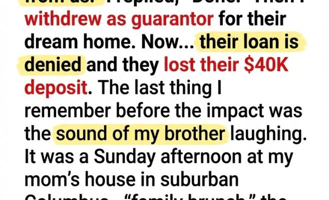 It was a Sunday afternoon at my mom’s house in suburban Columbus—“family brunch,” the kind with matching napkins and forced smiles. My brother, Jason, was showing off the floor plan for the house he and his fiancée, Tara, were “definitely closing on” next month. The dream home. The one with the wraparound porch and the finished basement.