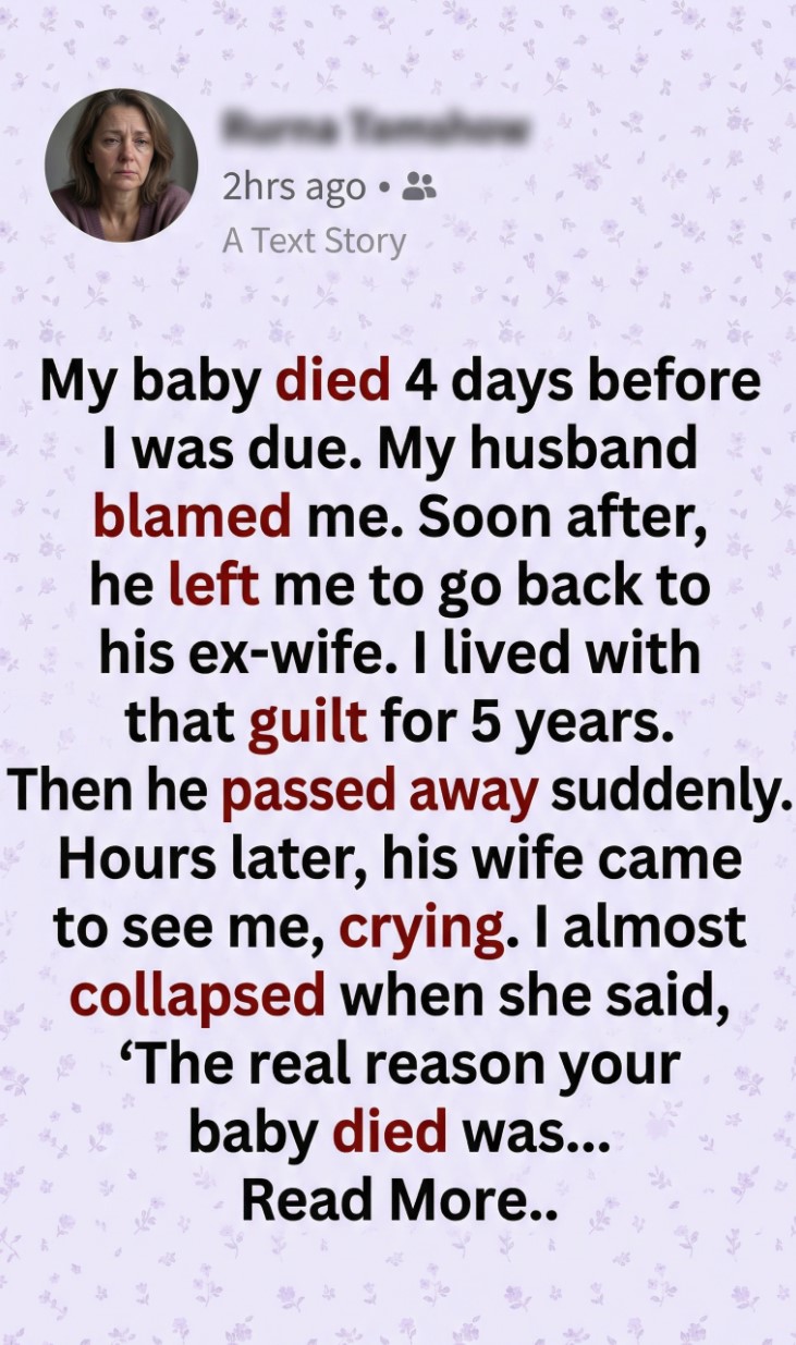 I stared at her—his wife—my hands trembling, my heart pounding so hard it hurt. For five years, I had carried the weight of those words: It was your fault. I had replayed that night over and over, searching for something I did wrong… something I could have changed.