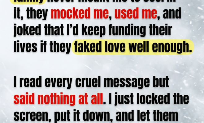 I sent my mother grocery money every Friday because she told me Social Security was never enough. On birthdays they posted smiling photos with captions about how blessed they were to have me. In private, they called me an ATM with abandonment issues. Something in me did not break. That would have been easier. Something colder happened. Lauren came back into the kitchen wiping her hands on a dish towel. “Who keeps texting me?” she asked. I turned the screen toward myself before she could see.