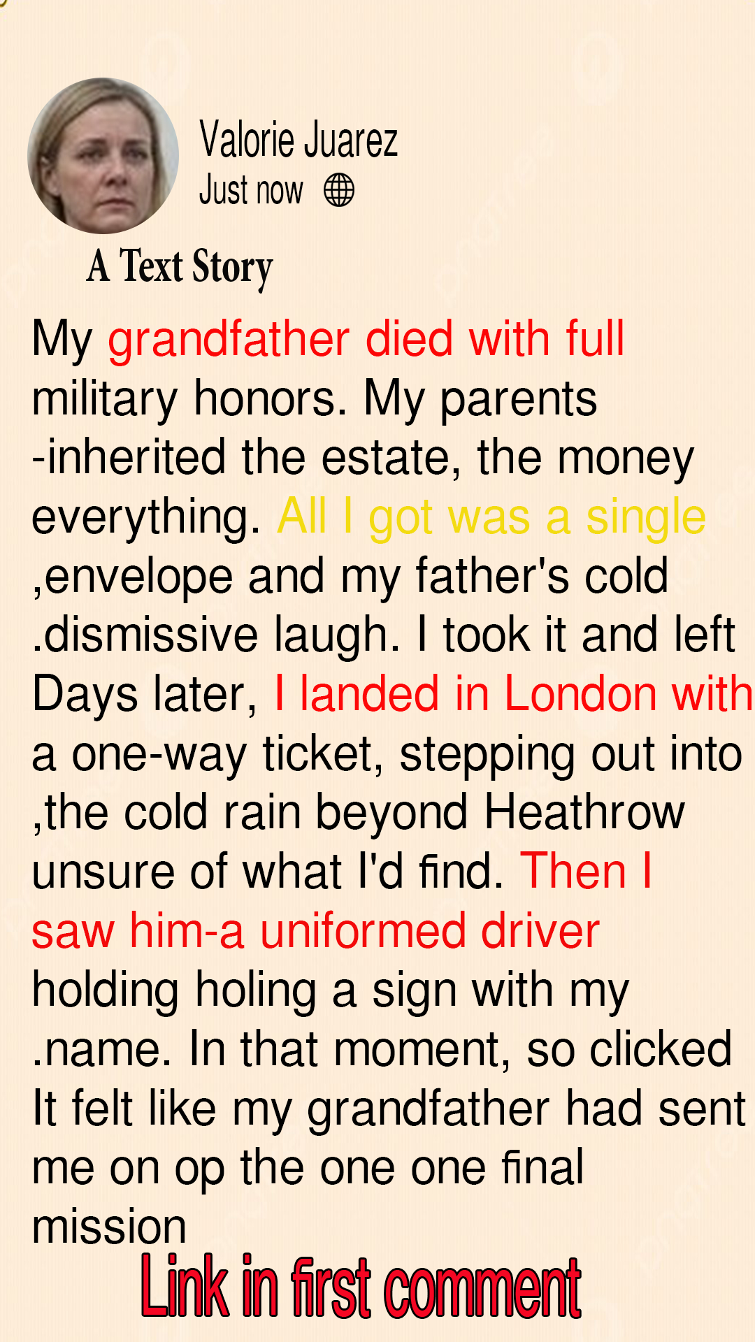My grandfather died with full military honors. My parents inherited the estate, the money—everything. All I got was a single envelope and my father’s cold, dismissive laugh. I didn’t argue. I took it and left. Days later, I landed in London with a one-way ticket, stepping out into the cold rain beyond Heathrow, unsure of what I’d find. Then I saw him—a uniformed driver holding a sign with my name. In that moment, something clicked. It felt like my grandfather had sent me on one final mission… one no one else in my family had even seen coming. The sleek, black town car idling behind the stoic driver looked completely out of place for a young woman who had just been aggressively written out of a massive, multi-million dollar family inheritance.