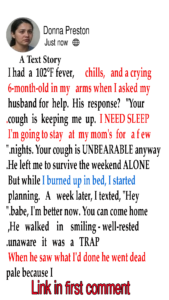 Drew had been distant for weeks, glued to his phone, snapping over small things. One night, while I rocked Sadie through my fever, I begged him: “Can you take her for 20 minutes?” His reply? “Your cough is keeping me up. I need sleep. I’ll stay at my mom’s.”