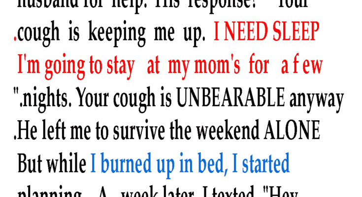 When I recovered enough, I texted: “I’m better now. You can come home.” He rushed back, complaining about his mom’s dog and yard work. I cooked his favorite meal, cleaned the house, and smiled as he relaxed on the couch. Then I struck.