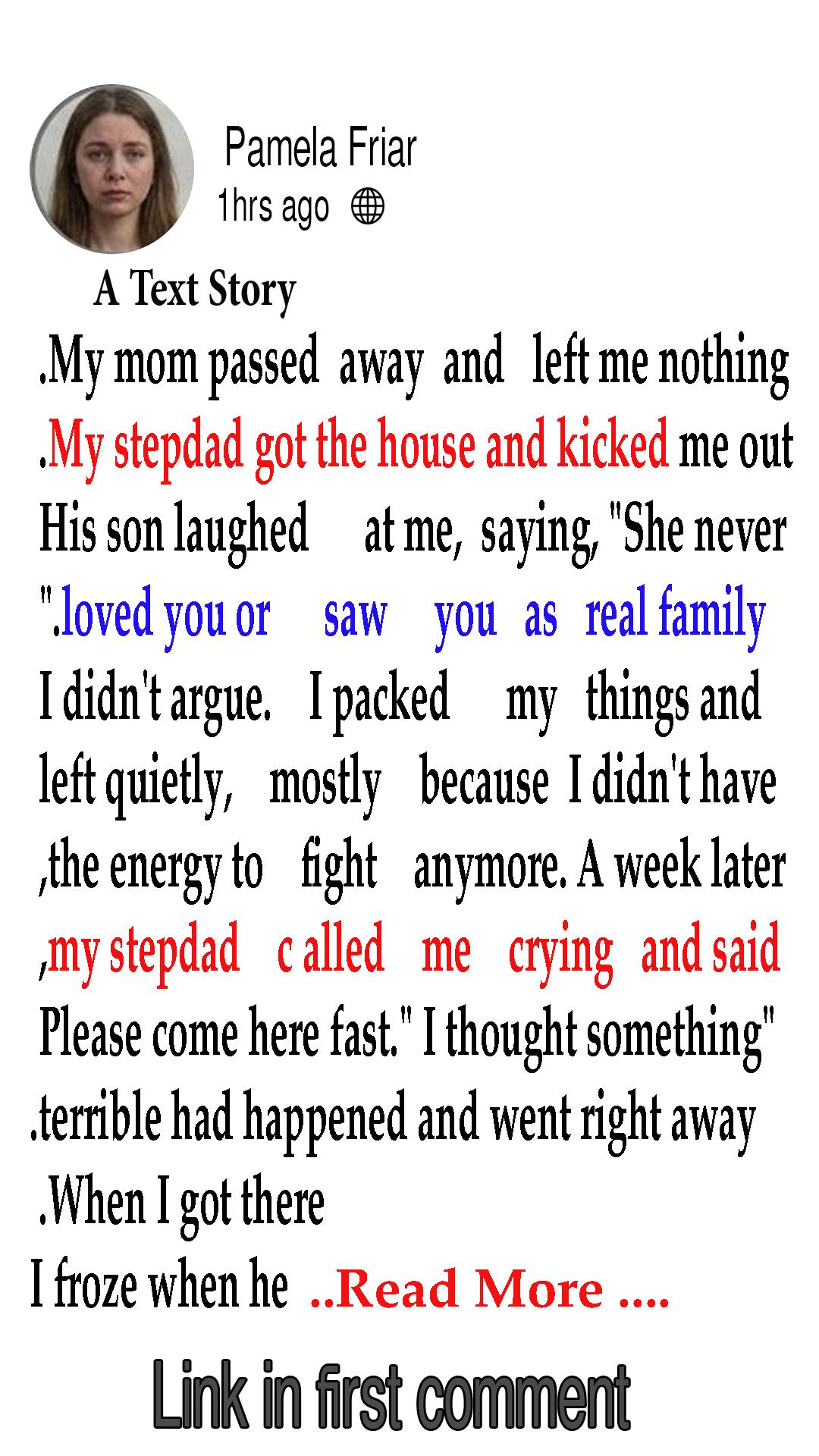 At the will reading, I sat at the far end of the table, eyes fixed on the grain of the wood to hide my emotions. I didn’t expect much—life had been complicated since she remarried. Still, when the lawyer declared that everything—house, savings, belongings—went to my stepfather, a tight knot formed in my chest.