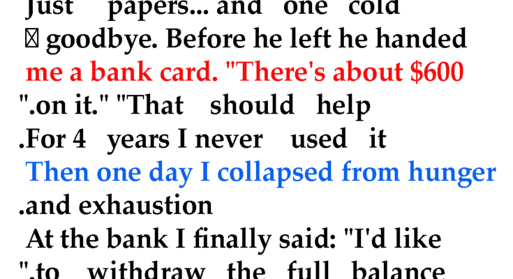 He gave me the card, lied about the $600 so I wouldn’t trigger the bank’s attention before the divorce was finalized, and walked away so I would survive.