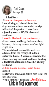 Standing on our front porch was the woman from the suburbs. The $15,000 diamond necklace sparkled brilliantly under our porch light. On her hip rested the toddler, who was staring up at Mark with his exact hazel eyes and signature crooked smile.