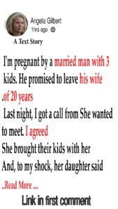 I’m pregnant by a married man with 3 kids. He promised to leave his wife of 20 years. Last night, I got a call from her. She wanted to meet. I agreed. She brought their kids with her. And, to my shock, her daughter said…