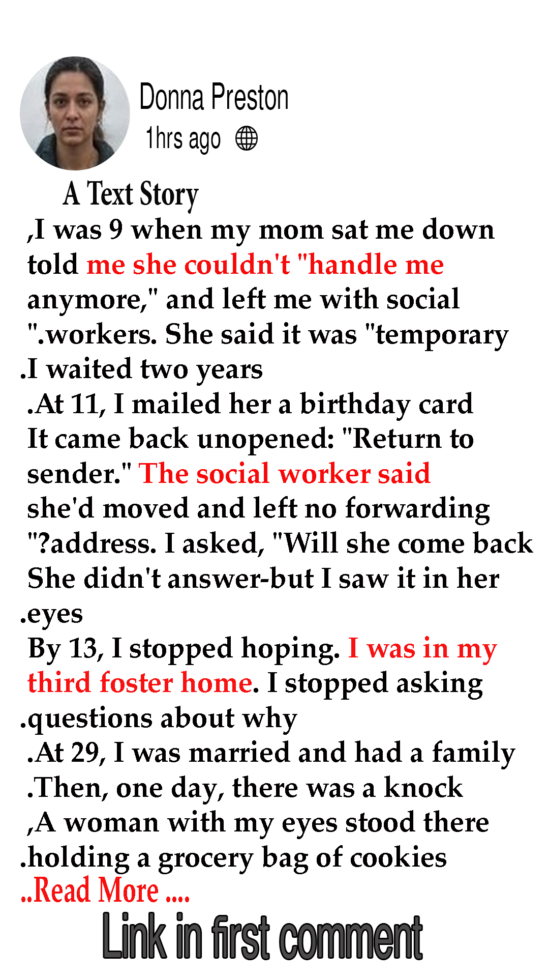 The social worker didn’t answer. But I saw it in her eyes.