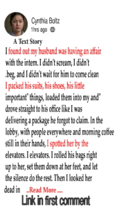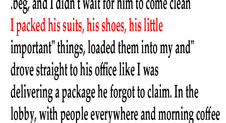 I found out my husband was having an affair with the intern. I didn’t scream, I didn’t beg, and I didn’t wait for him to come clean. I packed his suits, his shoes, his little “important” things, loaded them into my trunk, and drove straight to his office like I was delivering a package he forgot to claim. In the lobby, with people everywhere and morning coffee still in their hands, I spotted her by the elevators. I rolled his bags right up to her, set them down at her feet, and let the silence do the rest. Then I looked her dead in the eye and said, congratulations—he’s all yours.