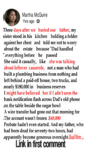 Dad’s house sold the following spring for $264,000. The business was eventually purchased by one of the longtime technicians and a competitor for a fair amount that preserved jobs and honored Dad’s name on the trucks for another year. After all debts, taxes, fees, and legal costs, each of us received far less than we would have if Renee had not stolen first. Theft inside an estate is not only the amount taken. It is the interest lost, the fees generated, the time burned, the trust destroyed, and the ordinary grieving process shattered into filings and hearings.
