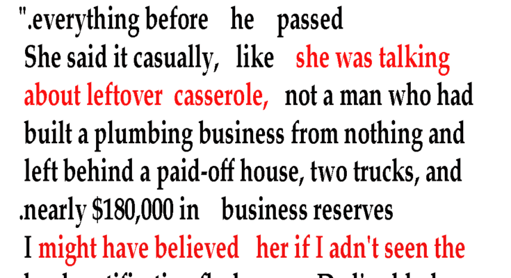 The morning of the funeral had been cold and blindingly bright, the kind of winter day that makes the sky look indifferent. People filled the church with casseroles, sympathy cards, and stories about Dad unclogging pipes for widows who couldn’t pay him full price. They called him dependable. Honest. Precise. The pastor said a man’s true measure is found in what remains of him in other people’s lives. At the time I thought that meant grief, memory, gratitude. I didn’t yet understand that what remains also includes paperwork, account balances, truck titles, vendor lists, password resets, and the sudden emergence of character in the living. Death does not only expose what the dead have built. It exposes what the survivors believe they are entitled to claim.