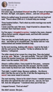 “He loved you,” she said. “More than anything. That money… it was everything he had. He sold his business, the house he inherited, everything. He wanted to make sure you’d be okay. But he knew if you knew the truth… you’d stay. And he couldn’t bear putting you through that.”
