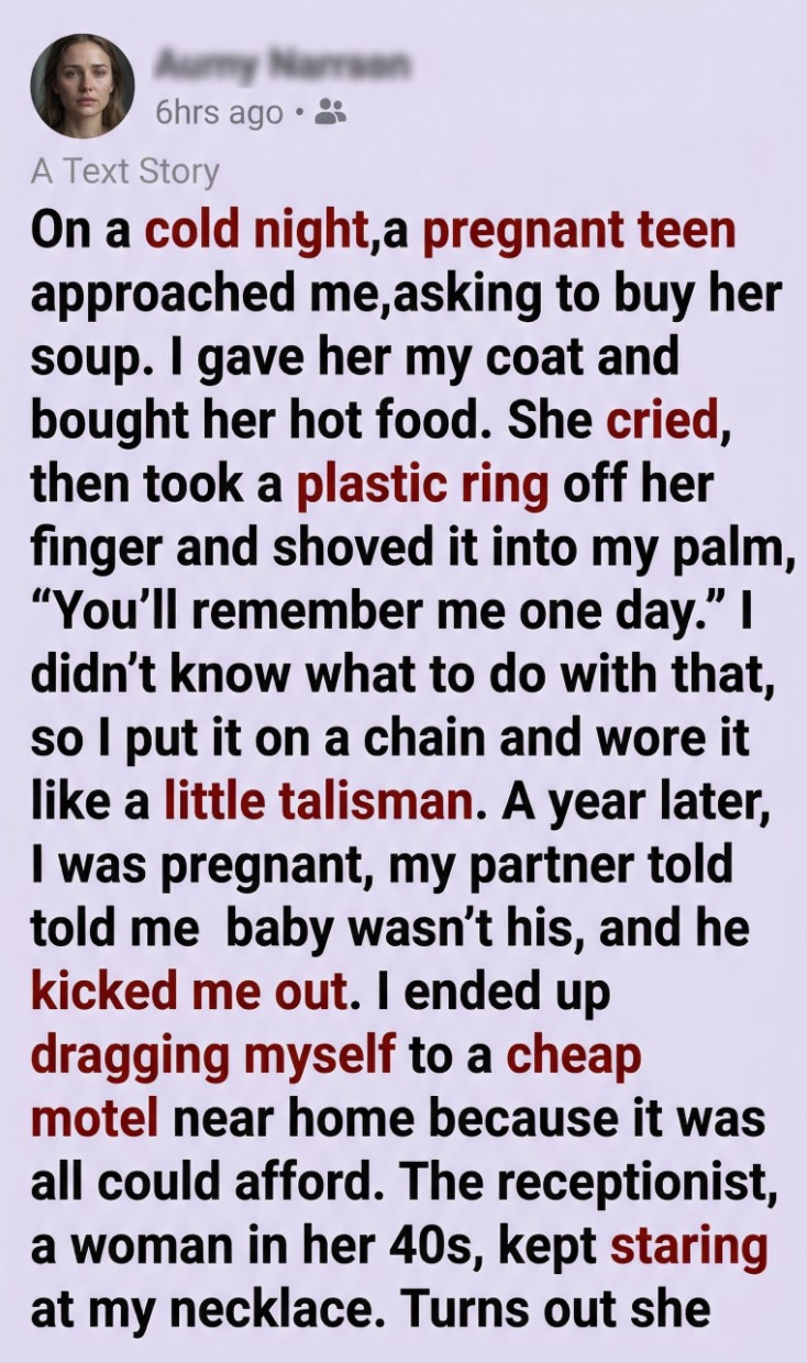 She stepped out from behind the counter, her voice trembling. “That night—you saved me. I had nothing. No home, no hope. That ring was the only thing I owned, even if it was just plastic.” She let out a shaky breath. “I meant what I said. I hoped one day I’d see you again.”